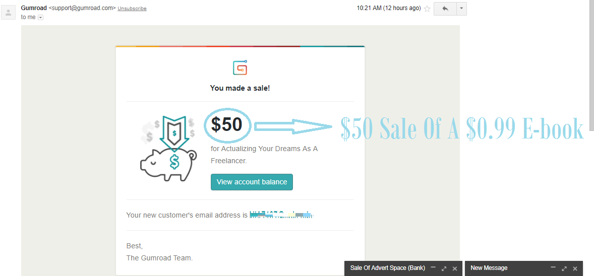 Our two e-books, Actualizing Your Dreams As A Freelancer [$0.99+]and Making Millions In Your Dark Room [$9.99+] are on sale on Gumroad and you can get paid to generate sales for us. You can get as much as $50 from a sale of the Actualizing Your Dreams As A Freelancer because there are no maximum amounts you can buy it.